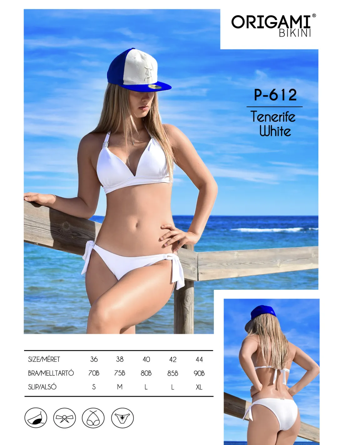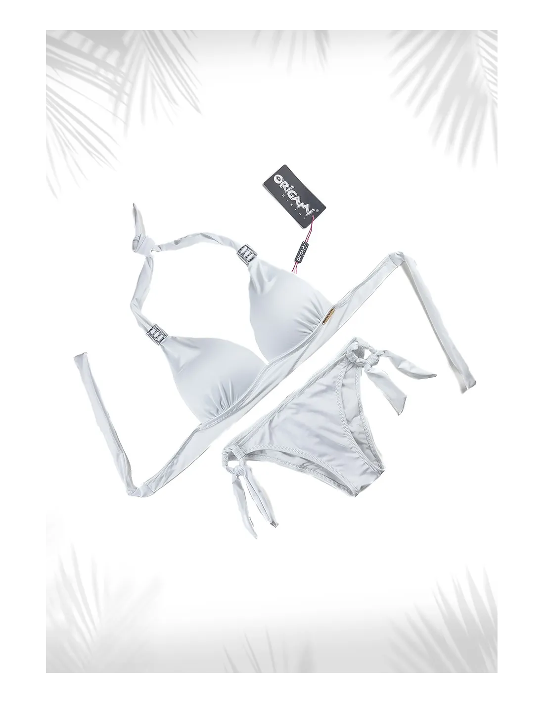 Origami Bikini Trojuholníková podprsenka s košíkom B → s košíkom v tvare push-up, zosilneným spodným ramienkom, viazaním okolo krku a chrbta. Pri výbere veľkosti si vždy skontrolujte veľkosť spodnej časti, ktorá patrí k vrchnej časti, pretože sa môže líšiť!
