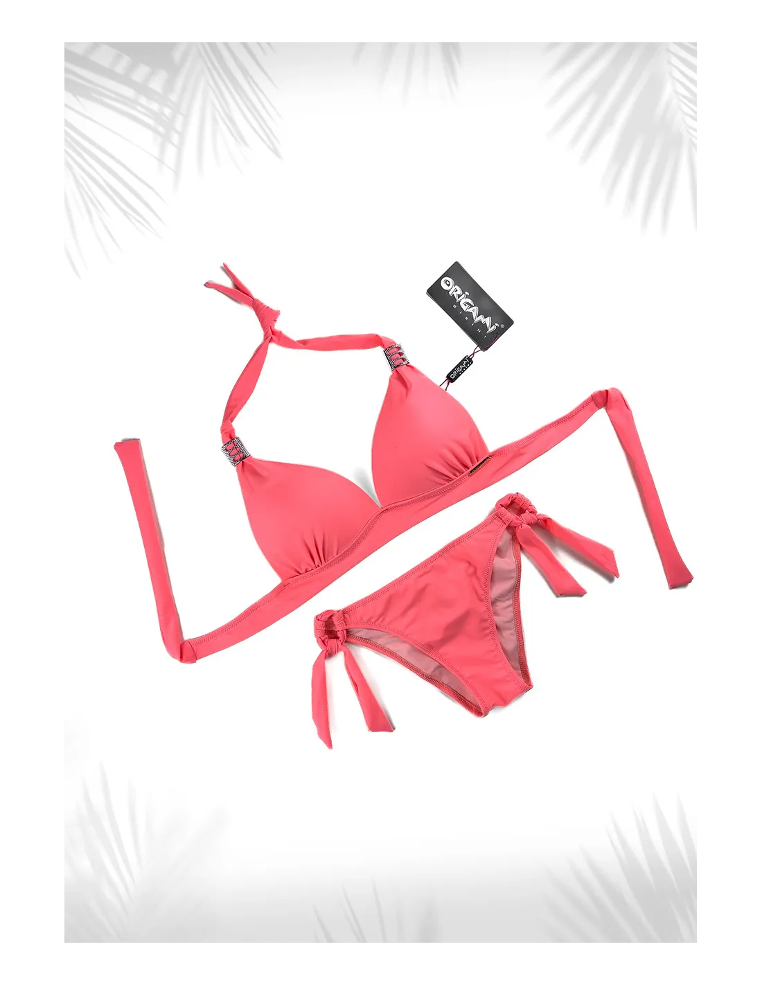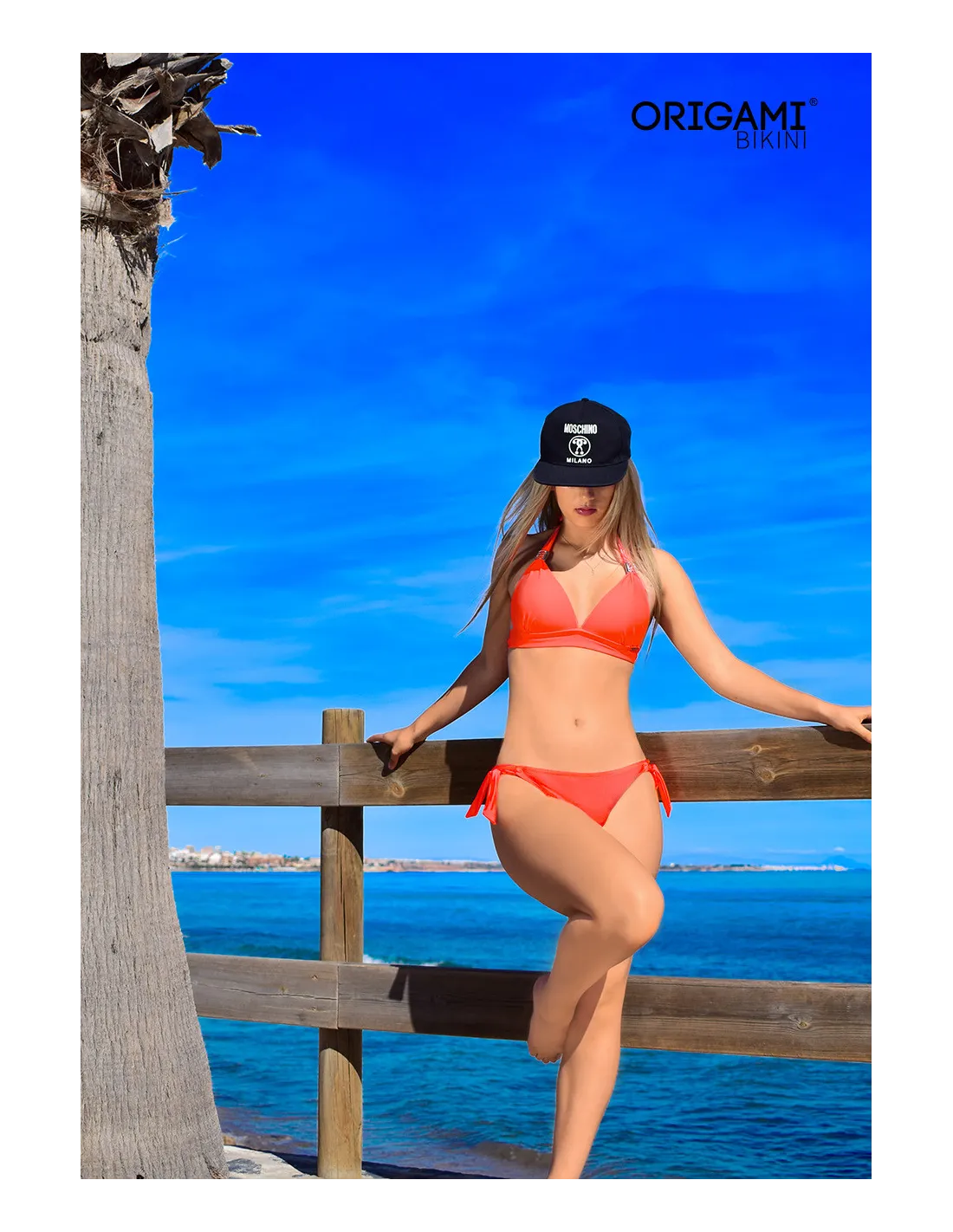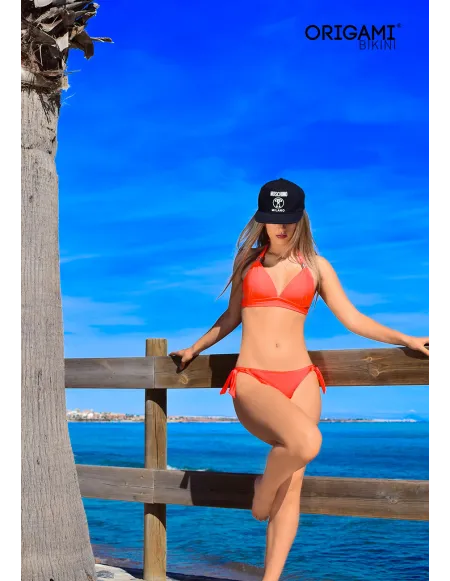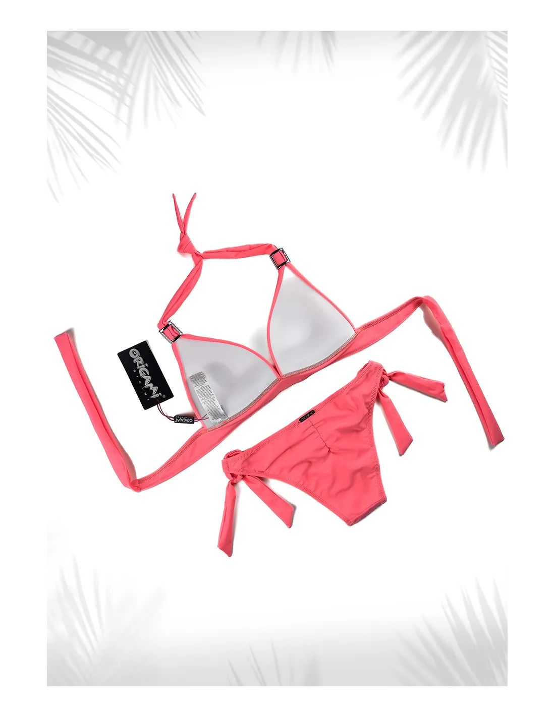 Origami Bikini Trojuholníková podprsenka s košíkom B → s košíkom v tvare push-up, zosilneným spodným ramienkom, viazaním okolo krku a chrbta.