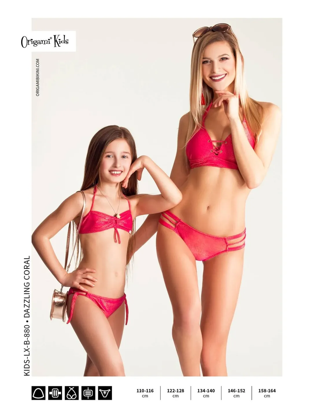 Origami Bikini dievčenská bandeau podprsenka → s nastaviteľným ramienkom okolo krku, nastaviteľným chrbtom a odnímateľnou tenkou vložkou. Jeho farba dokonale ladí s mnohými dospelými Origami bikinami.