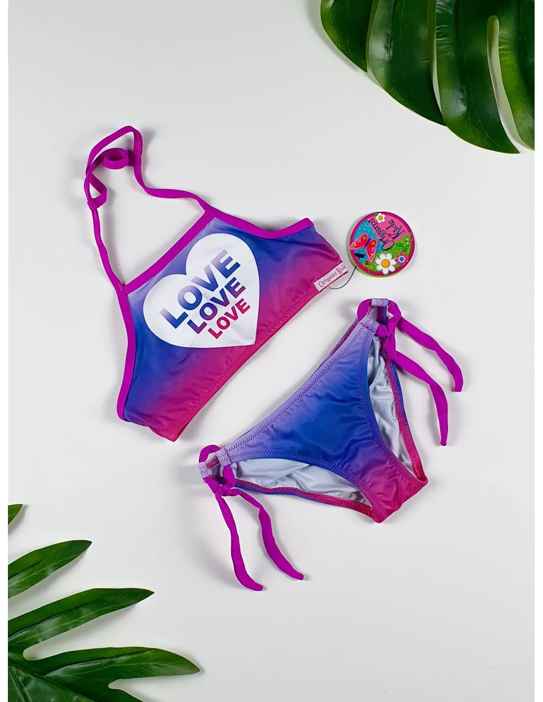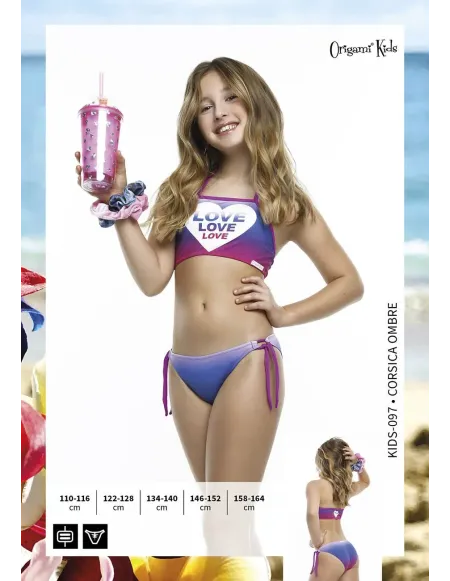 Origami Bikini dievčenská top podprsenka → s nastaviteľným ramienkom okolo krku. Jeho farba dokonale ladí s mnohými dospelými Origami bikinami.